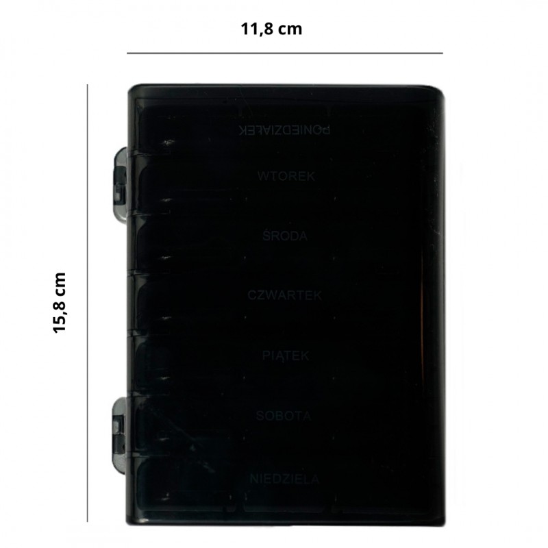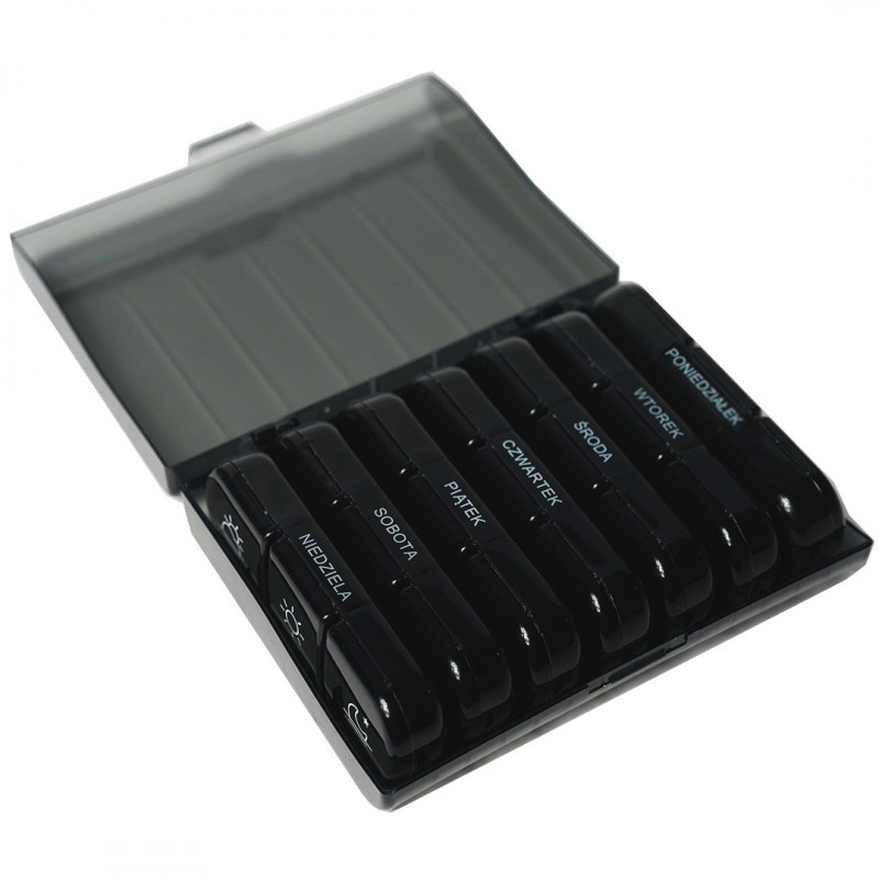 Czarne pudełko na leki podłużne na cały tydzień to praktyczne i estetyczne rozwiązanie dla każdego, kto pragnie zachować porządek i regularność w przyjmowaniu leków. Wysoka jakość wykonania, przejrzyste oznaczenia oraz liczne zalety funkcjonalne czynią ten produkt niezastąpionym narzędziem w codziennym zarządzaniu lekami.