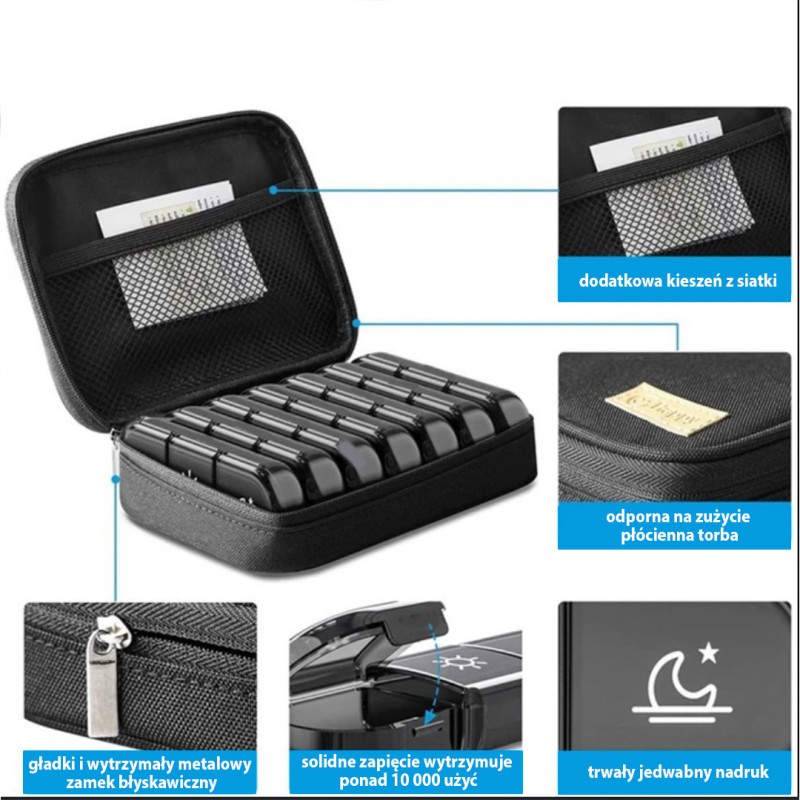 ✅ Łatwość użycia - intuicyjna konstrukcja i łatwo dostępne pojemniki sprawiają, że zarządzanie lekami staje się proste i szybkie. To szczególnie istotne dla osób starszych, które mogą mieć trudności z otwieraniem tradycyjnych opakowań leków.