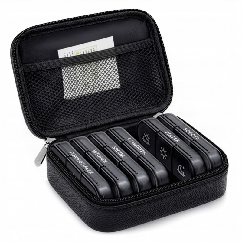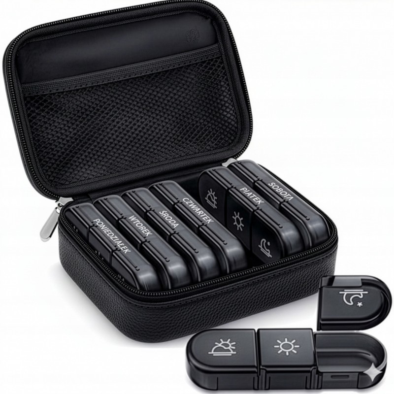 ✅ Łatwość użycia - intuicyjna konstrukcja i łatwo dostępne pojemniki sprawiają, że zarządzanie lekami staje się proste i szybkie. To szczególnie istotne dla osób starszych, które mogą mieć trudności z otwieraniem tradycyjnych opakowań leków.