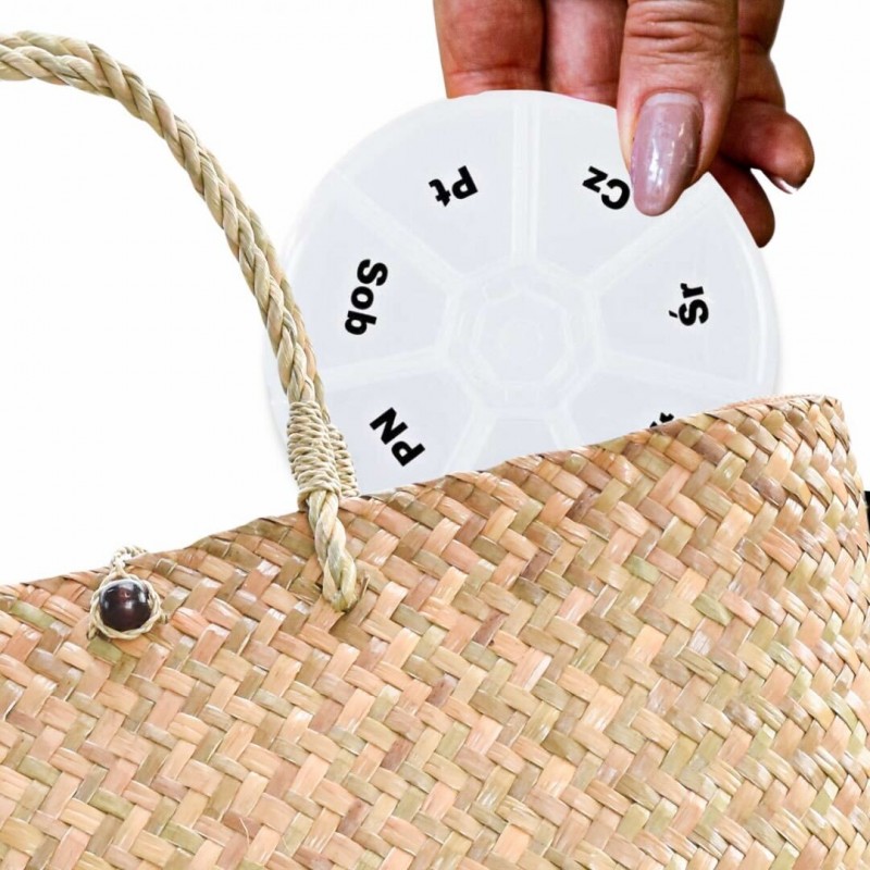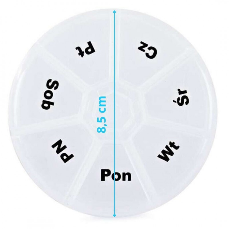 Nasze pudełko to praktyczny pojemnik na leki, który składa się z siedmiu oddzielnych przegródek, po jednej na każdy dzień tygodnia, co pozwala na precyzyjne zaplanowanie i segregację leków na każdy dzień. Pudełko organizer 7 dni to idealne rozwiązanie dla osób przyjmujących różne leki w różnych porach dnia, ułatwiające utrzymanie porządku i regularności w leczeniu. Wykonane z bezpiecznych i trwałych materiałów, nasze pudełko gwarantuje długotrwałe użytkowanie i ochronę zawartości przed wilgocią i zanieczyszczeniami. Kompaktowy rozmiar i ergonomiczny design sprawiają, że pudełko jest łatwe do przenoszenia, co czyni je idealnym towarzyszem zarówno w domu, jak i w podróży.