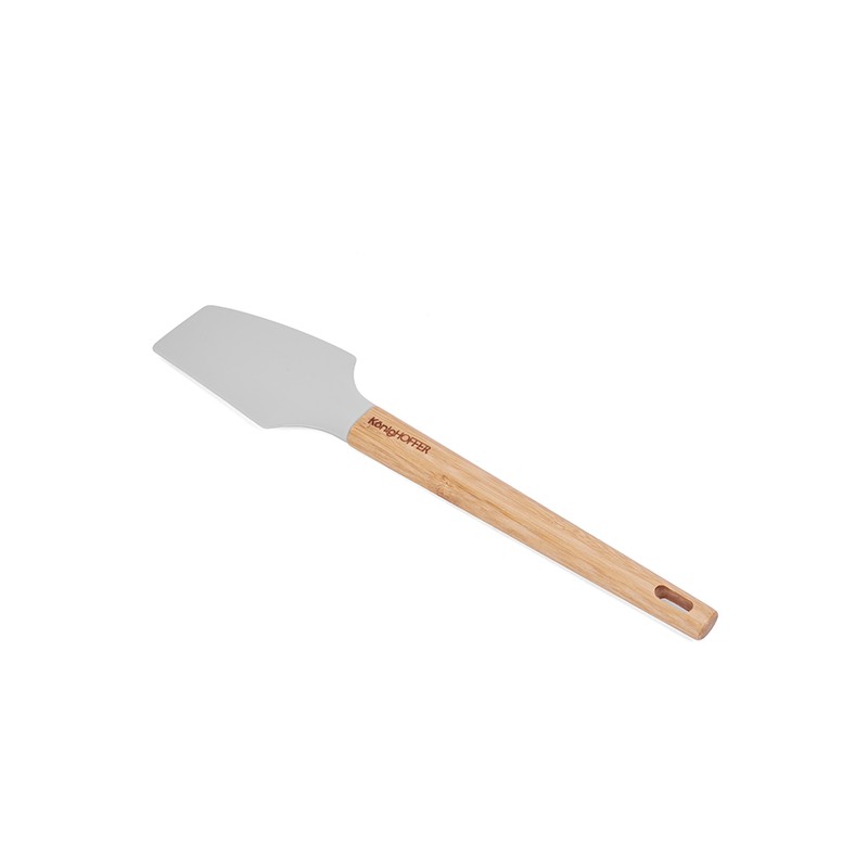 Do silikonu nic nie przywiera, więc łatwo go umyć. Bez problemu zadbasz o czystość szpatułki. Uchwyt wykonano z bambusa. Posiada on otwór do zawieszenia.