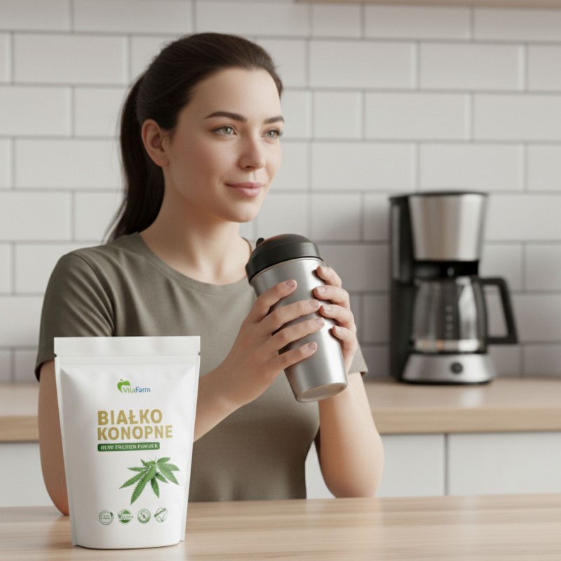 W jednej porcji (ok. 30 g) znajdziemy nie tylko wysoką ilość białka, ale także cenny błonnik, wspierający pracę jelit oraz uczucie sytości po posiłku. Dzięki temu białko konopne jest doskonałym wyborem zarówno dla osób aktywnych fizycznie, jak i dla tych, którzy chcą w naturalny sposób kontrolować masę ciała.
