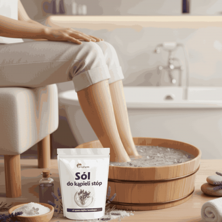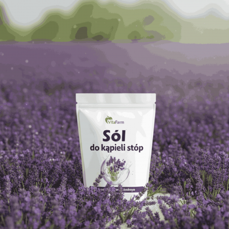 Sól Epsom ma działanie relaksujące. Łagodzi bóle i stany zapalne. W połączeniu z olejkiem lawendowym o właściwościach przeciwgrzybicznych i relaksujących, przyniesie ulgę przy obolałych i zmęczonych stopach, a także zmiękczy i zregeneruje zrogowaciały naskórek.