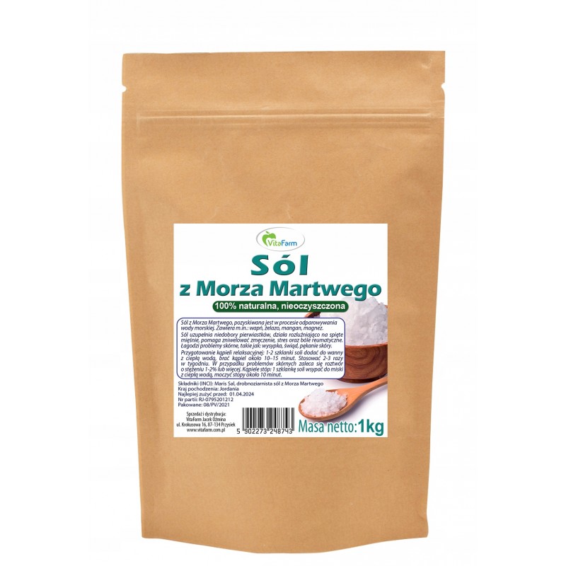 Sól z Morza Martwego jest naturalnym produktem, wolnym od sztucznych barwników, zapachów czy konserwantów, co czyni ją odpowiednią dla osób o wrażliwej skórze i alergiach.