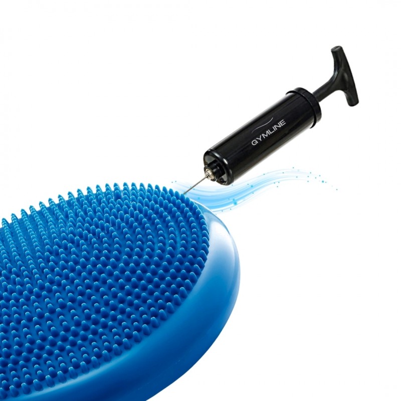 Poduszkę sensoryczną należy pompować za pomocą dołączonej ręcznej pompki. Ważne jest, aby nie nadmuchać jej zbyt mocno – lekko napompowana poduszka zapewnia odpowiednią niestabilność, która jest kluczowa dla aktywizacji mięśni głębokich. Należy jednak pamiętać, żeby nie napompować poduszki sensorycznej zbyt delikatnie - podczas nacisku nie powinno się dotykać podłoża.