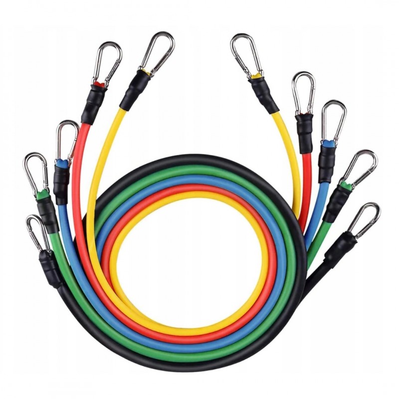 Zestaw 5 ekspanderów GYMLINE zawiera wszystko, co niezbędne do efektywnego i różnorodnego treningu: