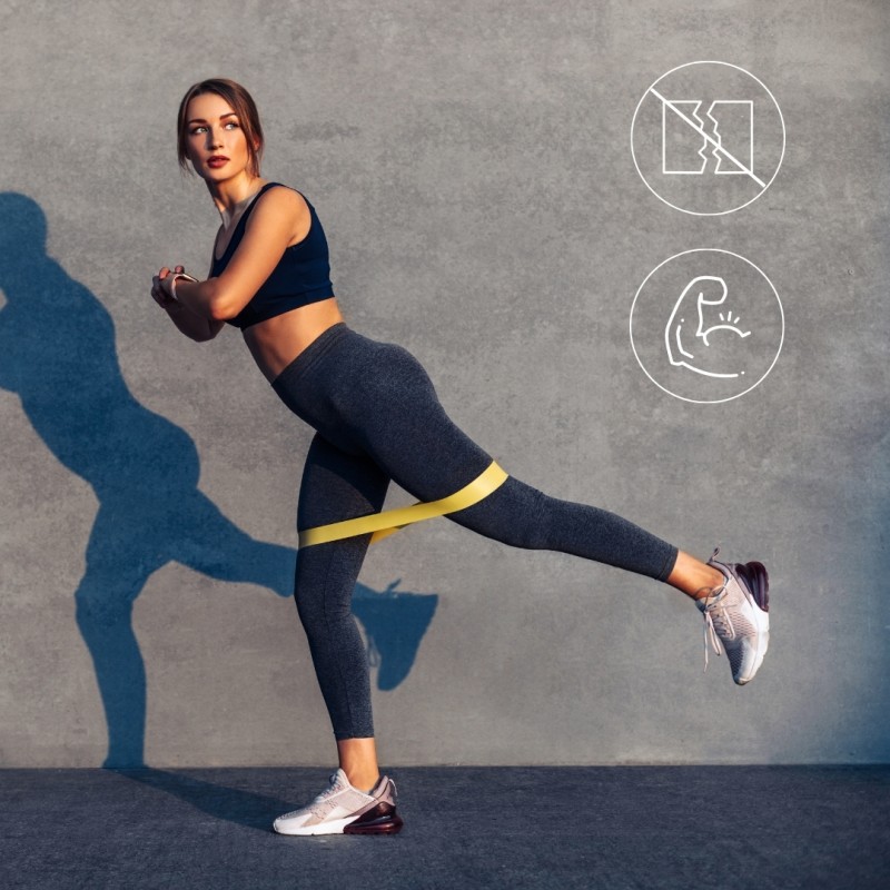 ✔️ Żółta taśma: opór bardzo lekki (1-2 kg) – idealna do rozgrzewki i ćwiczeń mobilizacyjnych