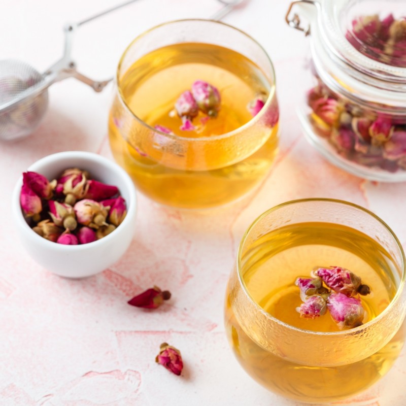 Czerwone suszone pąki róży zawierają naturalne olejki eteryczne, flawonoidy oraz antocyjaniny, które odpowiadają za ich charakterystyczny kolor i aromat. To właśnie dlatego są chętnie wykorzystywane nie tylko w kuchni, ale także w kosmetyce naturalnej i aromaterapii.
