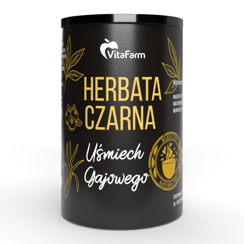 Czarna herbata liściasta, trawa cytrynowa, aromaty, truskawka, malina, jeżyna, jagoda, kwiat nagietka.