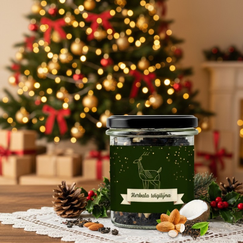 Nasza Herbata Wigilijna, zapakowana w elegancki słoik, będzie doskonałym pomysłem na prezent dla Ciebie lub Twoich bliskich. Idealnie sprawdzi się również jako uzupełnienie większego podarunku.