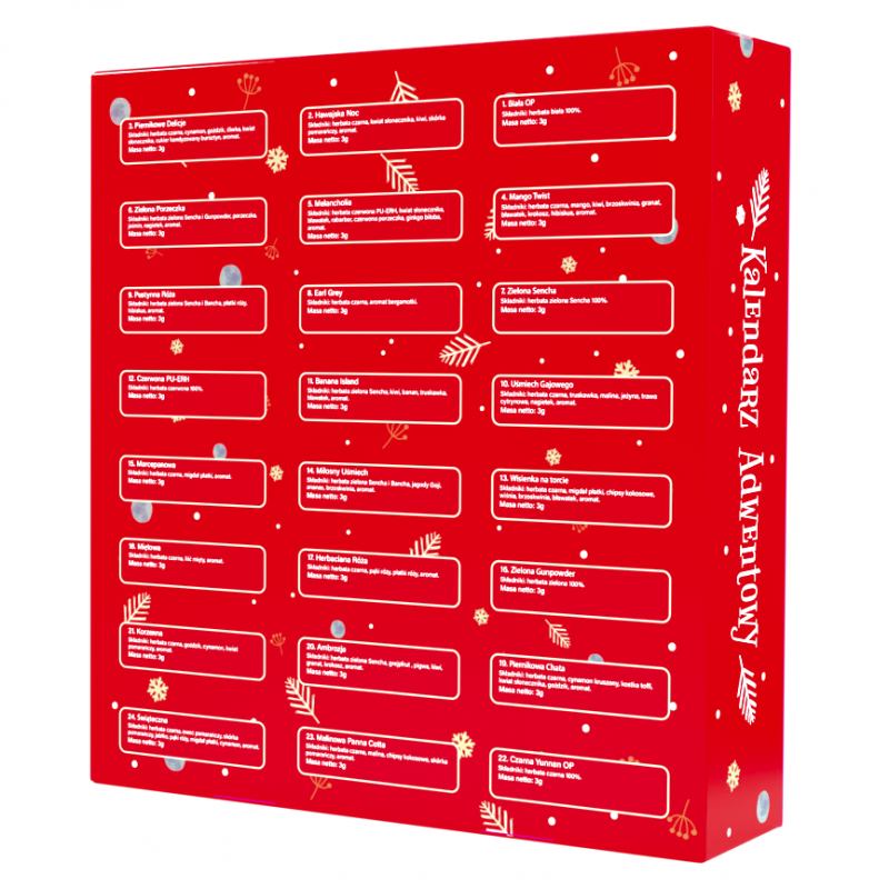 Świąteczny czas to idealny moment, aby podarować sobie lub bliskim coś wyjątkowego, co będzie umilać każdy dzień aż do Wigilii. Kalendarz adwentowy z herbatą liściastą to doskonały wybór dla osób, które cenią sobie nie tylko smak, ale również naturalność i aromat naparu. Dzięki temu kalendarzowi adwentowi z herbatami każdy dzień grudnia przynosi nową herbatę, zachęcając do chwili relaksu przy kubku aromatycznego napoju.