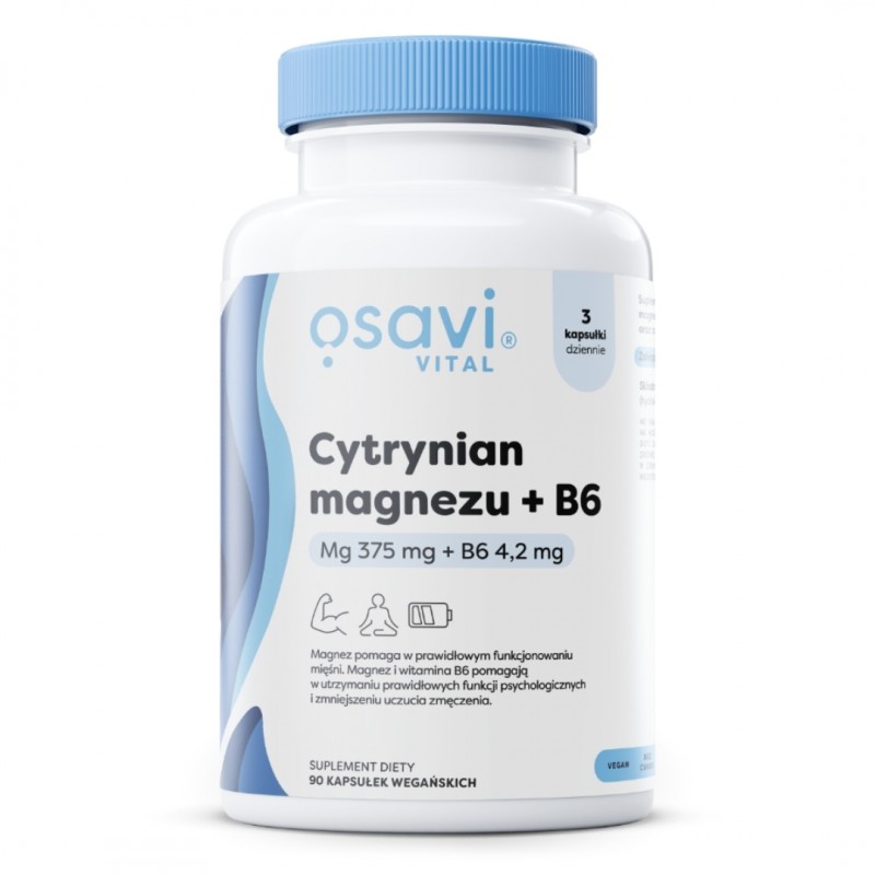Sprawdź koszty dostawySuplement diety w kapsułkach Osavi zawiera magnez w formie cytrynianu oraz aktywną witaminę B6 (P-5-P). Magnez i witamina B6 wspierają metabolizm energetyczny, funkcjonowanie układu nerwowego i funkcji psychologicznych, a także redukują zmęczenie.