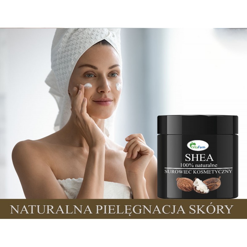 Shea dostarcza również wszystkich najważniejszych witamin - A, E i F - potrzebnych, aby skóra wyglądała młodo i zdrowo. Masło shea stosuje się bezpośrednio na skórę. Jest to produkt uniwersalny, który doskonale nadaje się do każdego rodzaju cery.
