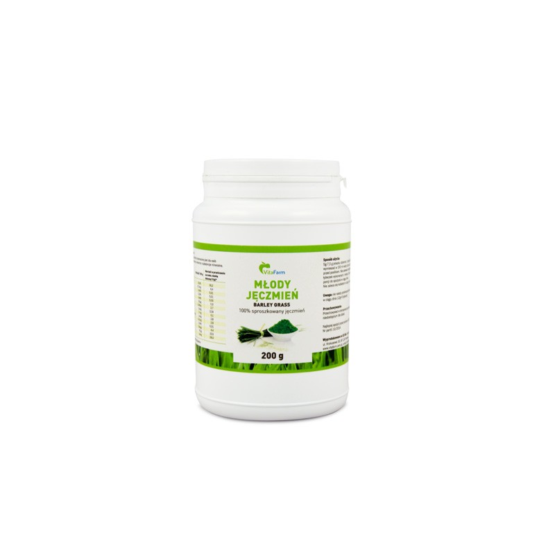 Młody jęczmień przeznaczony jest dla osób dorosłych jako uzupełnienie diety w witaminy i substancje mineralne.