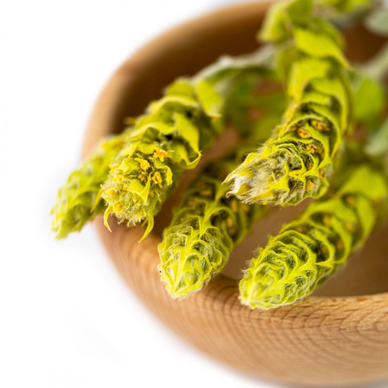 Gojnik BIO (Sideritis scardica), znany również jako herbata górska lub szałwia libańska, to roślina występująca naturalnie w wysokich partiach gór Bałkanów oraz w rejonach Turcji. W tej wersji oferowany jest w postaci całych szyszek, czyli nienaruszonych kwiatostanów, które najlepiej oddają naturalny charakter ziela i pozwalają zachować pełnię aromatu.
