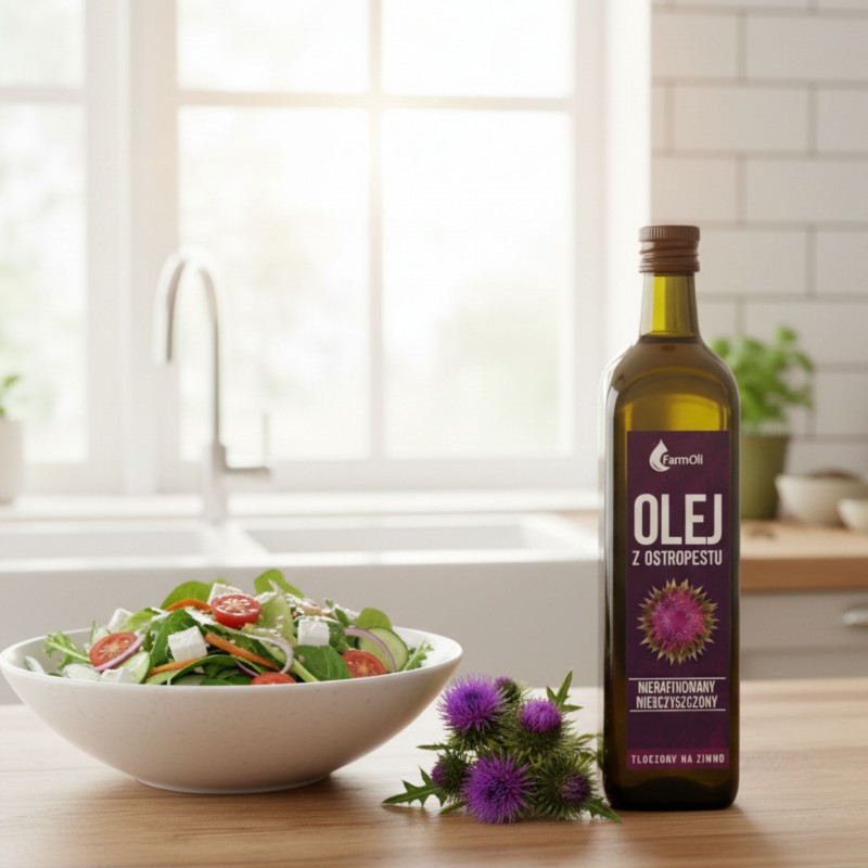 Choć ta wersja oleju najlepiej sprawdza się w pielęgnacji, można go także stosować w kuchni. Świetnie pasuje jako dodatek do sałatek, past warzywnych czy smoothie. Ważne- olej z ostropestu tłoczony na zimno nie nadaje się do smażenia, aby zachował swoje cenne właściwości, należy spożywać go wyłącznie na zimno.