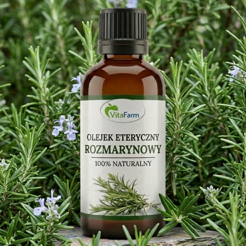 Rozmaryn (Rosmarinus officinalis), zwany „rosą morza”, to wiecznie zielony krzew ceniony od starożytności, symbolizujący miłość i piękno. Olejek eteryczny rozmarynowy to wszechstronny eliksir. Olej rozmarynowy na włosach utrzymuje ich zdrowy wygląd. Natomiast olejek rozmarynowy na zmarszczki oraz twarz działa antyoksydacyjnie oraz ujędrniająco. Olejek rozmarynowy do włosów pielęgnuje również skórę głowy. Jego charakterystyczny ziołowy zapach jest bardzo przyjemny, sprawdza się przy bólach reumatycznych oraz w stanach zapalnych skóry.