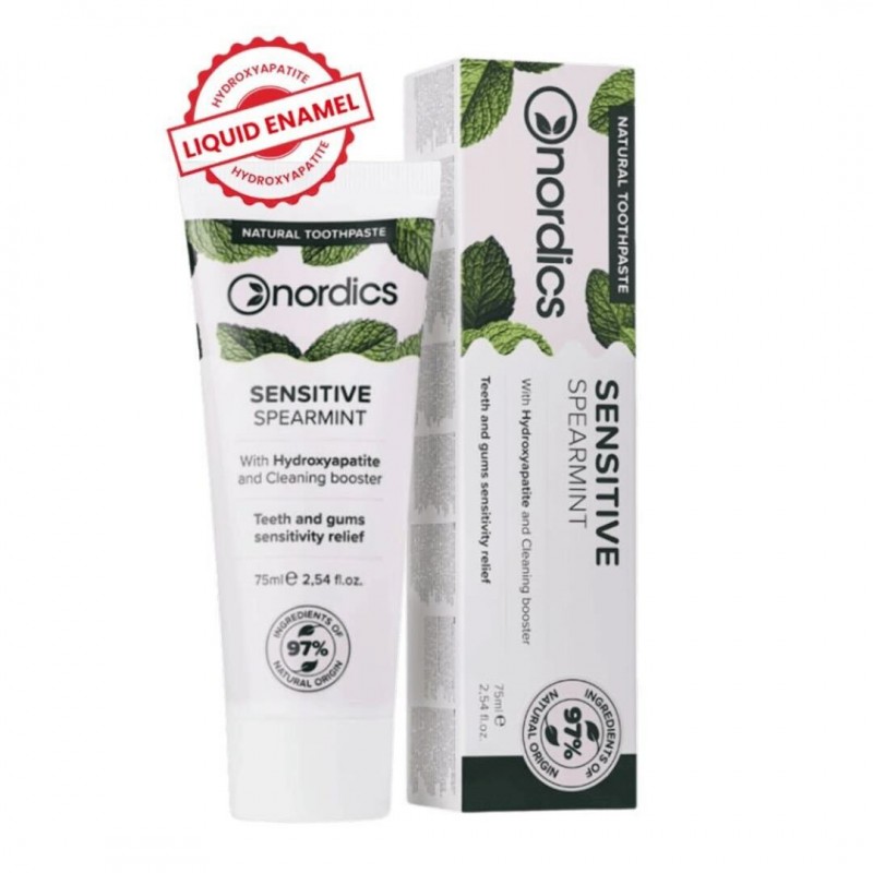 Aqua, Sorbitol, Hydrated Silica, Glycerin, Hydroxyapatite, Cellulose Gum, Sodium Lauroyl Sarcosinate, Potassium Nitrate, Mentha Piperita Oil, Mentha Viridis Leaf Oil, Stevia Rebaudiana Extract, Salvia Officinalis Leaf Extract, Chamomilla Recutita Flower Extract, Zingiber Officinale Extract, Menthol, Melaleuca Alternifolia Leaf Oil, Phenoxyethanol, Caprylyl Glycol, Citric Acid, Sodium Benzoate, Potassium Sorbate, CI 16185, Limonene, Pinene, Carvone.