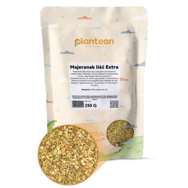 To roślina o szerokim zastosowaniu, której suszone listki kryją w sobie prawdziwe bogactwo składników odżywczych. Majeranek zawiera olejki eteryczne, które wspierają trawienie i łagodzą dolegliwości żołądkowe. Znajdziemy w nim również witaminy A i C, rutynę, karoten, cynk, mangan, flawonoidy, katechiny, garbniki, fitoncydy oraz liczne sole mineralne. Dzięki temu wykazuje działanie przeciwzapalne, przeciwbakteryjne i antyoksydacyjne, a także wspomaga układ odpornościowy.