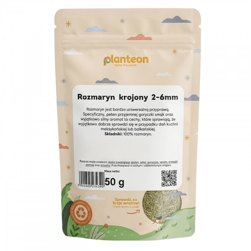 Wprowadź do swoich dań wyjątkowy aromat lasu i ziołowej świeżości dzięki naszemu krojonemu rozmarynowi! To przyprawa ceniona na całym świecie zarówno przez kucharzy profesjonalnych, jak i domowych miłośników gotowania. Jej intensywny, lekko gorzki smak oraz mocny, charakterystyczny aromat sprawiają, że każda potrawa zyskuje wyrafinowany charakter.