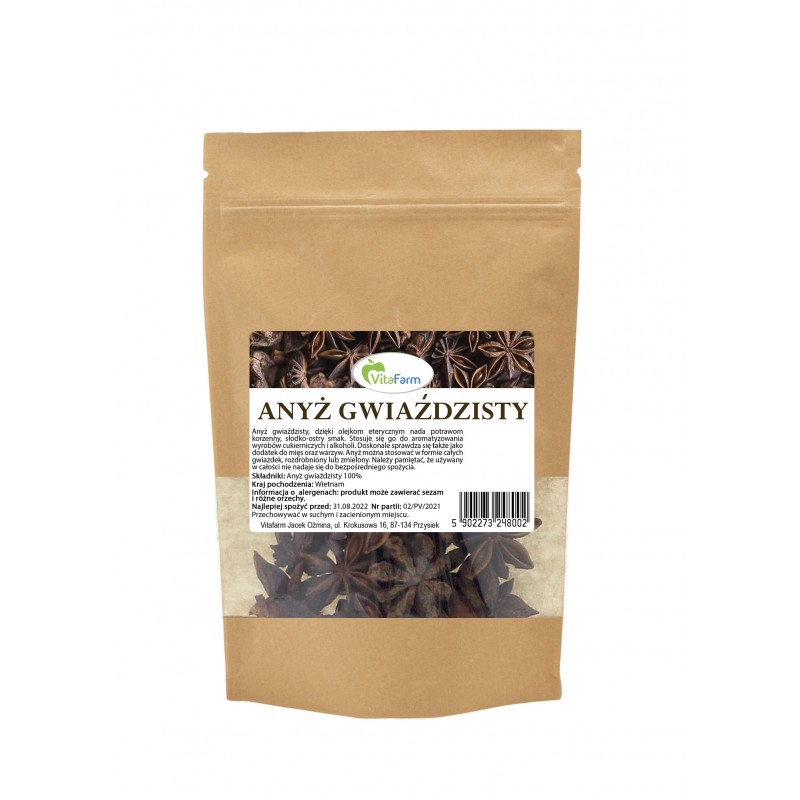 Doskonale sprawdza się także jako dodatek do mięs oraz warzyw. Anyż można stosować w formie całych gwiazdek, rozdrobniony lub zmielony. Należy pamiętać, że używany w całości nie nadaje się do bezpośredniego spożycia.