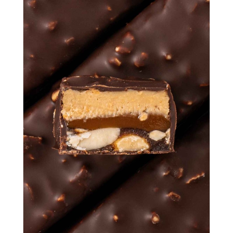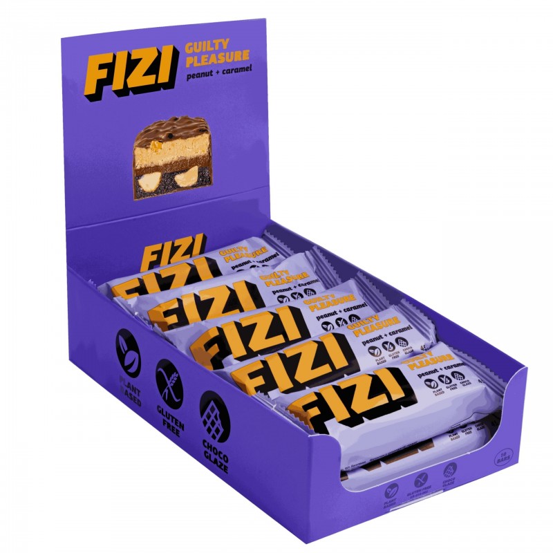 Baton Fizi peanut + caramel to roślinna przyjemność bez wyrzutów sumienia – stworzona z inspiracji klasycznymi smakami dzieciństwa. Łączy w sobie naturalną słodycz daktyli, kremową delikatność karmelu kokosowego oraz chrupkość orzechów ziemnych i nerkowca. To propozycja z linii Guilty Pleasure, jednak oparta wyłącznie na starannie dobranych składnikach funkcjonalnych – bez białego cukru, glutenu i laktozy.