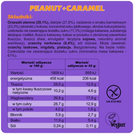 To świetna przekąska dla osób, które chcą jeść mądrze i smacznie, bez kompromisów między przyjemnością a zdrowiem. Idealny dla sportowców, osób aktywnych fizycznie i umysłowo, a także dla tych na dietach eliminacyjnych – bezglutenowej, bezlaktozowej czy niskocukrowej. Fizi peanut + caramel to baton, który zaspokaja ochotę na coś słodkiego, jednocześnie odżywiając ciało i wspierając dobre samopoczucie – w pracy, w podróży czy po treningu.