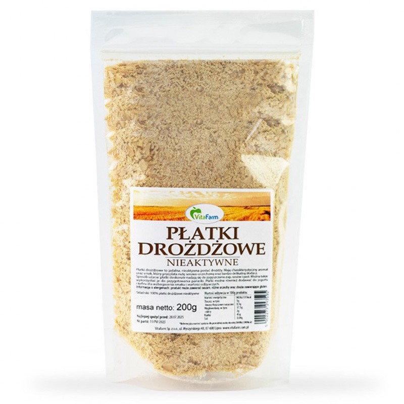PŁATKI DROŻDŻOWE to jadalna, nieaktywna postać drożdży. Mają charakterystyczny aromat oraz smak, który jest mieszanką delikatnej słodyczy z orzechowo-serowym smakiem w tle. Drobniutkie płatki przypominające tartą bułkę, z drożdży nieaktywnych, są naturalnym źródłem witamin z grupy B (duże ilości witaminy B1, B2, B3 i B8), H i D oraz mikroelementy, w tym chrom, kobalt, mangan, molibden, cynk, miedź, żelazo, wapń, magnez, fosfor, sód, selen oraz cynę. Ponadto ich składnikiem są aminokwasy, a także nuklepoproteiny i enzymy.