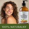 Produkt sprawdzi się również jako olej do włosów- zwłaszcza suchych, zniszczonych i wymagających wzmocnienia. Można go stosować solo lub jako dodatek do masek i odżywek. Nawilża, wygładza i nadaje połysk, a przy regularnym stosowaniu pomaga zapobiegać rozdwajaniu końcówek.