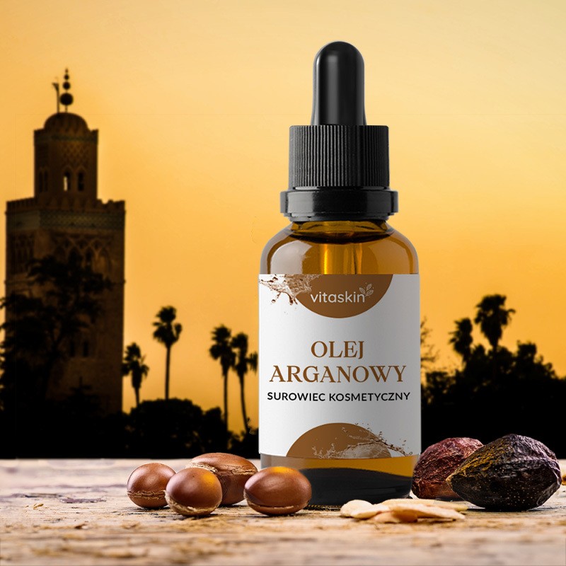 Ochrona przed szkodliwym promieniowaniem UV: Witamina E i inne antyoksydanty w oleju arganowym mogą pomóc w ochronie skóry przed szkodliwym działaniem promieniowania UV, które przyczynia się do procesów starzenia się skóry.