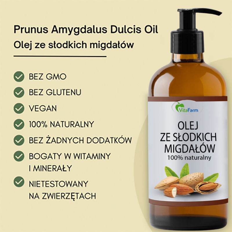 Warto podkreślić, że olej ze słodkich migdałów na skórę działa jak naturalny emolient- odbudowuje barierę hydrolipidową, koi i wygładza.