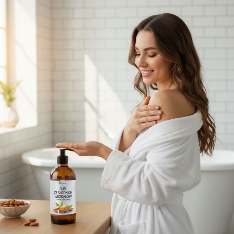 Delikatny, w 100% naturalny olej ze słodkich migdałów, idealny do pielęgnacji skóry i włosów. Nawilża, odżywia i łagodzi podrażnienia, pozostawiając skórę miękką i gładką. Nasz olej ze słodkich migdałów powstaje pod ścisłą kontrolą, aby zapewnić najwyższą czystość i skuteczność. Otrzymujesz produkt w pełni naturalny, bez zbędnych dodatków - czysty olej ze słodkich migdałów najwyższej jakości.