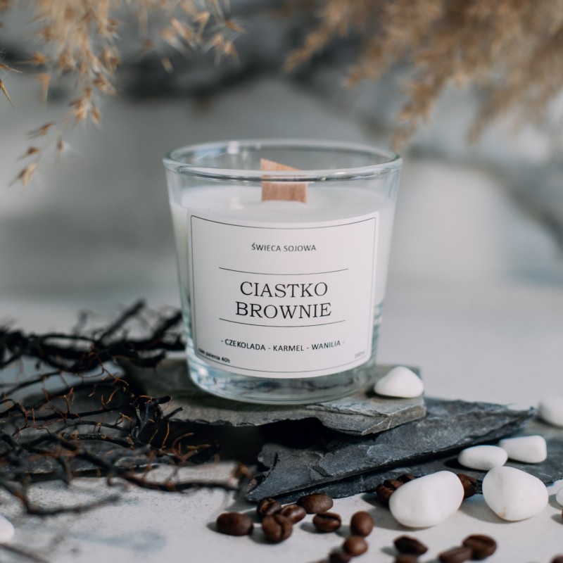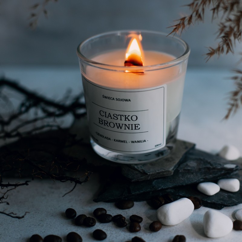 Świeca sojowa o zapachu brownie, która swoim aromatem ukoi zmysły i dopełni nastrój.