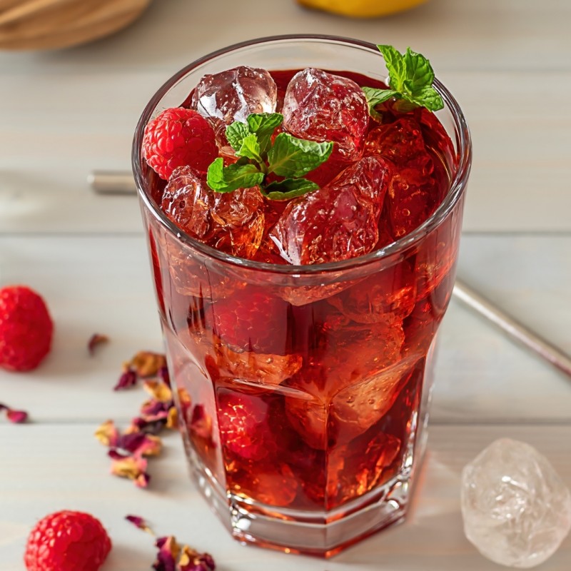 Przygotowanie: Wymieszaj wodę gazowaną z syropem malinowym i sokiem z cytryny. Dodaj kostki lodu i udekoruj świeżymi malinami oraz liśćmi mięty. Podawaj schłodzony napój.