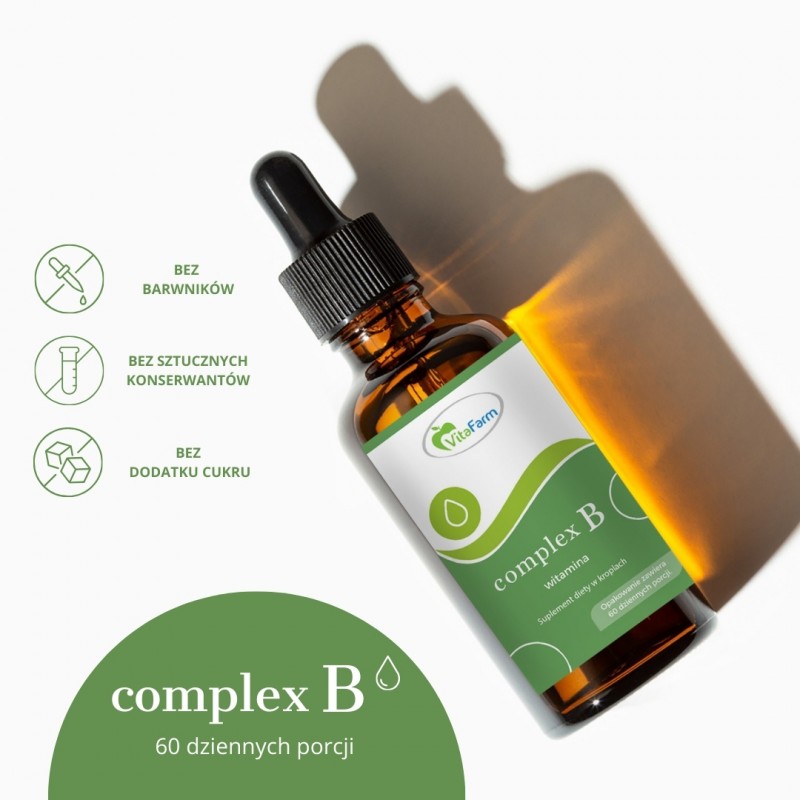 Witaminy z grupy B odgrywają istotną rolę w wielu procesach metabolicznych. Biorą udział w wytwarzaniu energii, produkcji czerwonych krwinek oraz wspierają prawidłowe funkcjonowanie układu nerwowego. Forma kropli ułatwia suplementację- wystarczy odmierzyć 15 kropli dziennie, aby dostarczyć organizmowi optymalną porcję składników.