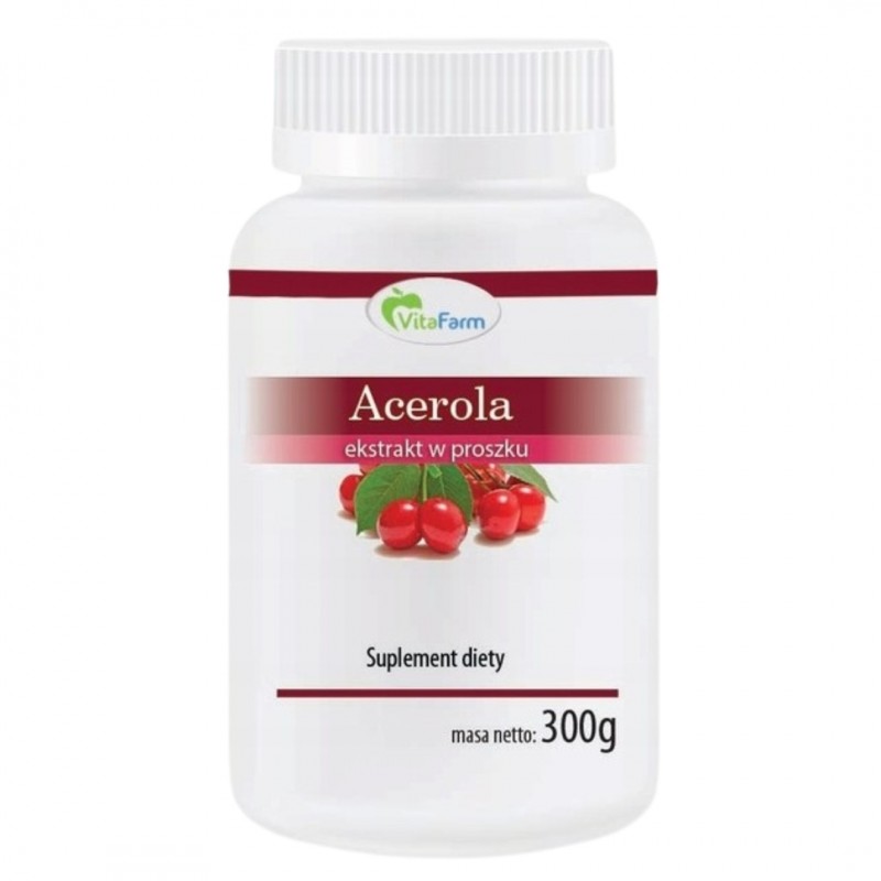 100g ekstraktu z aceroli w formie proszku. Zawartość witaminy C wynosi 25%.