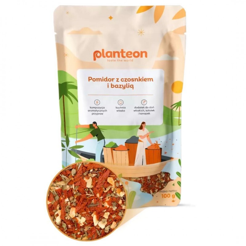 Pomidory dojrzewające w słońcu od wieków stanowią podstawę kuchni śródziemnomorskiej. W połączeniu z aromatycznym czosnkiem i świeżą bazylią tworzą klasykę, bez której trudno wyobrazić sobie włoskie potrawy. Nasza mieszanka to prosty, a jednocześnie wyjątkowy dodatek, który wzbogaci smak codziennych dań i nada im południowego charakteru.