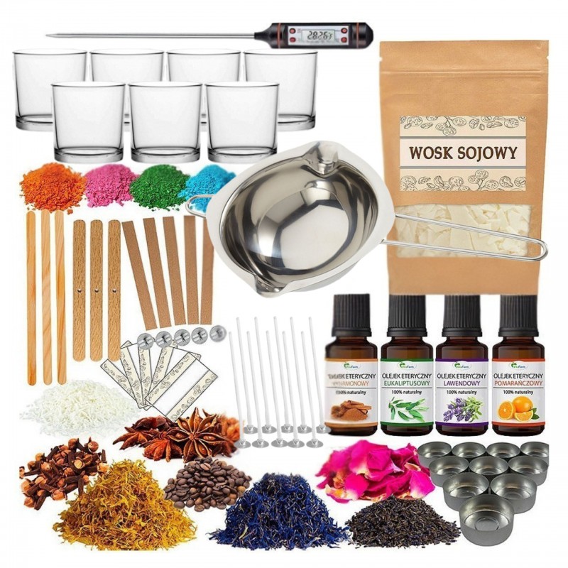 Gotowy zestaw startowy do wyrobu świec to rewelacyjna opcja dla osób, które chcą same wykonać świeczkę. Świetna opcja dla osób początkujących jak i zaawansowanych.