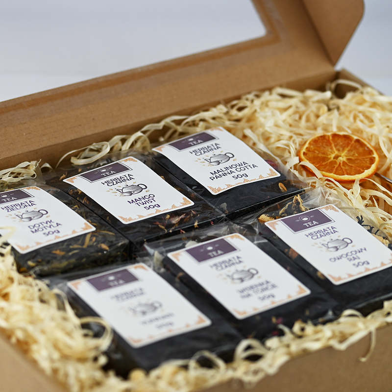 Piękny, ręcznie przygotowany zestaw 6 różnych herbat.