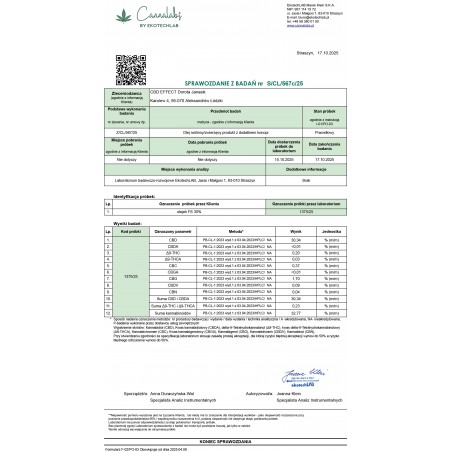 pełne spektrum naturalnych fitoskładników konopnych, w tym terpeny i flawonoidy