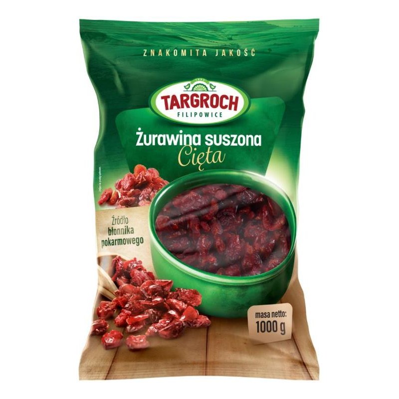 Cięta i delikatnie słodzona żurawina suszona to wyjątkowo smaczny i wszechstronny dodatek w codziennej kuchni. Jej naturalnie owocowy, lekko kwaskowaty smak doskonale komponuje się zarówno z wypiekami, jak i deserami. Często wykorzystywana jest jako składnik ciast, ciasteczek, puddingów, a także popularnych mieszanek śniadaniowych, takich jak musli czy granola.